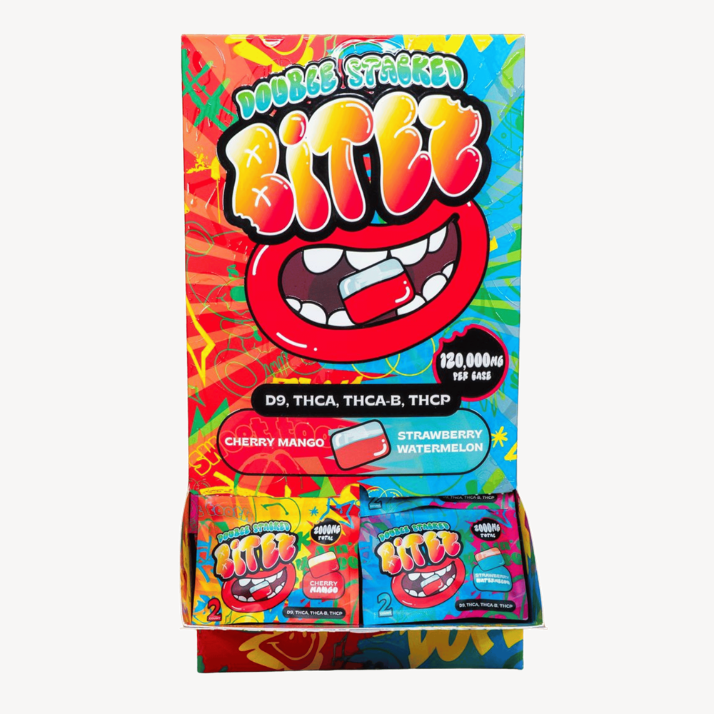 These double-stacked Bitez are more than just edibles; they’re a statement. A statement of quality, collaboration, and a commitment to delivering an experience that exceeds expectations. Brought to you by a collaboration between Ocho Extracts, Trip Drip, and Sugar, these double-stacked Bitez are your passport to a world of taste and euphoria. Packed with 1000mg of D9, THC-A, THCA-B, and THC-P per bite these 2-count sachets are not just a snack; it’s a ticket to an adventure that lingers on your taste buds and elevates your senses.