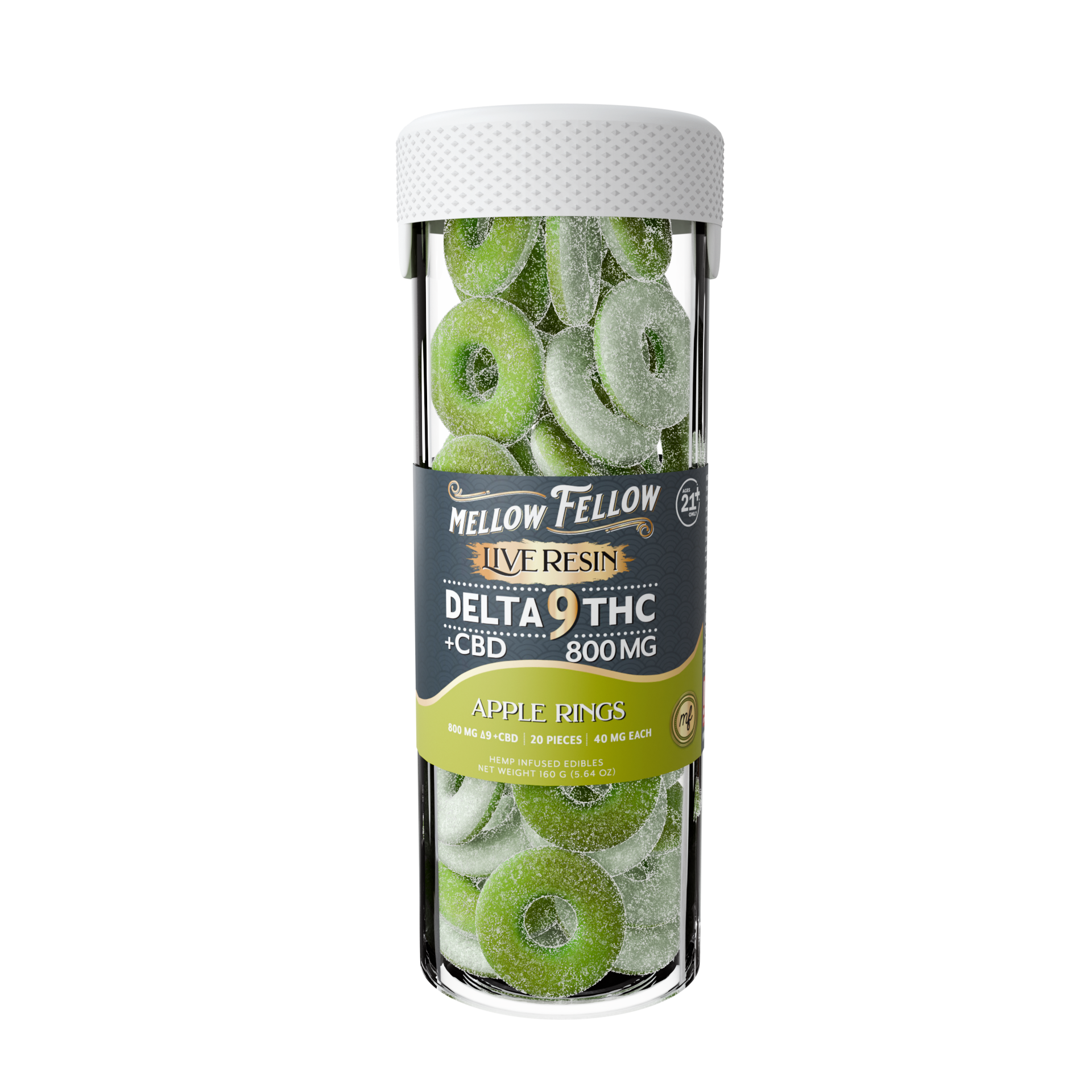 These premium live resin gummy rings deliver authentic apple flavor with a potent 40mg Delta-9 THC per piece. Mellow Fellow combines live resin extraction with precise dosing to create edibles that offer both flavor and consistent effects. Each ring provides a controlled, long-lasting experience perfect for experienced users seeking reliable potency.