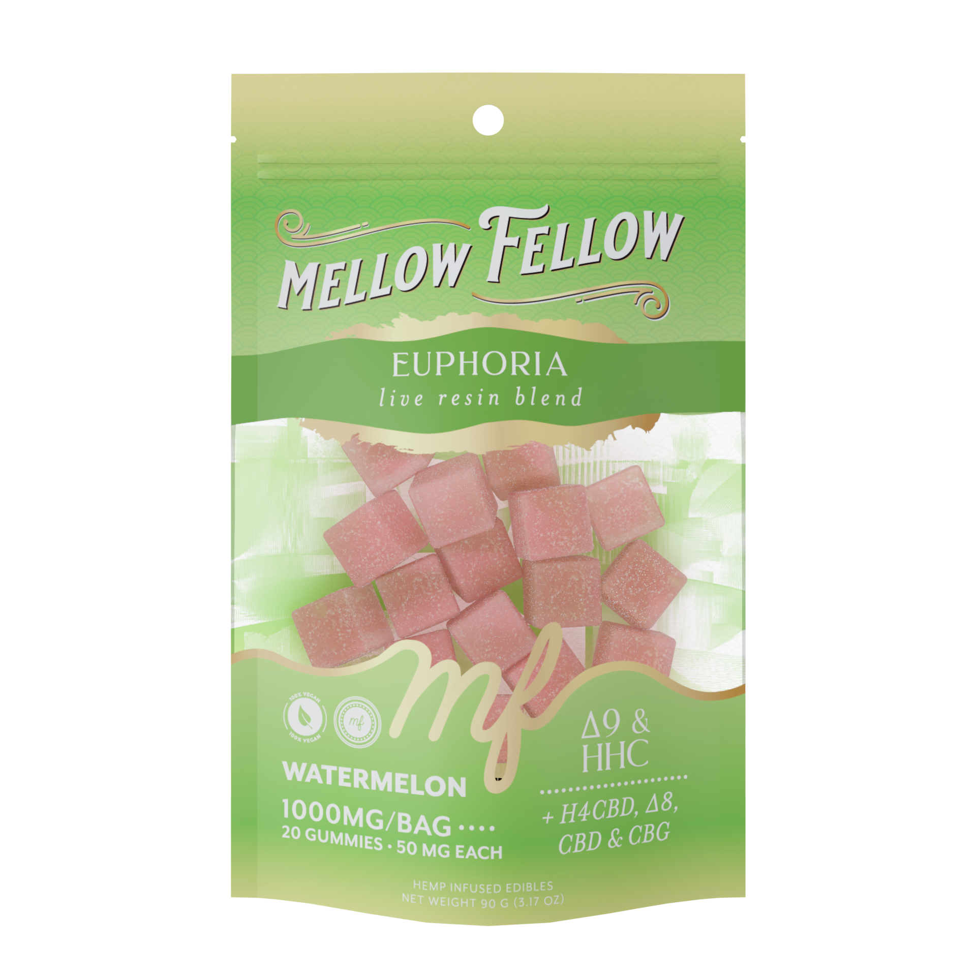 The Euphoria Blend in refreshing watermelon offers pure, potent, feel-good vibes. Each gummy delivers a balanced, uplifting buzz that melts stress away and fills your world with positivity. Whether you’re kicking back under the sun or chasing creative sparks, with Euphoria Live Resin Gummies, the good vibes never have to end.